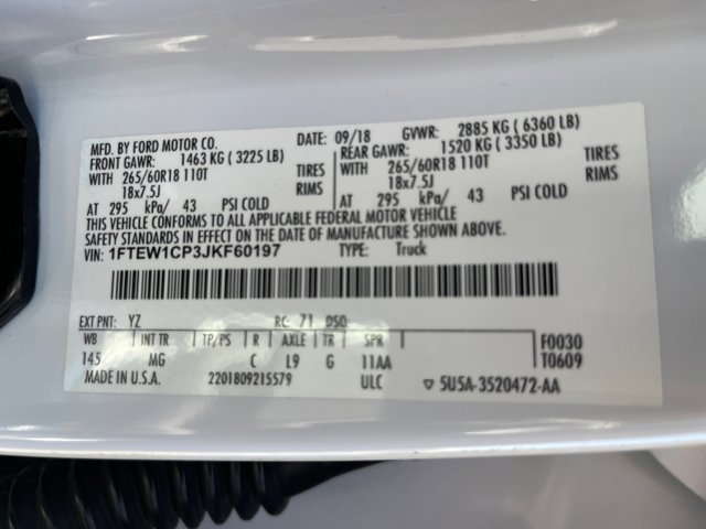 - VIN : 1FTEW1CP3JKF60197